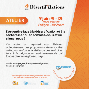 La Fondation CAUCE organise un atelier préparatoire en ligne « L’Argentine face à la désertification et à la sécheresse : où en sommes-nous et où allons-nous ? » le lundi 9 juin de 9h00 à 12h (heure argentine).