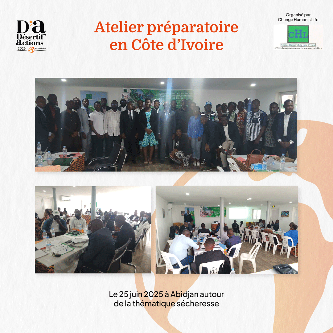 Change Human’s Life (CHL) a organisé un atelier national en collaboration avec plusieurs partenaires, dont la GIZ (Agence Allemande de Coopération Internationale) et CARI (Centre d’Appui à la Recherche et à l’Innovation). Cet événement visait à promouvoir les solutions agroécologiques comme réponses efficaces à la dégradation des terres et à la désertification, des enjeux cruciaux en Côte d’Ivoire et dans de nombreuses régions arides du monde