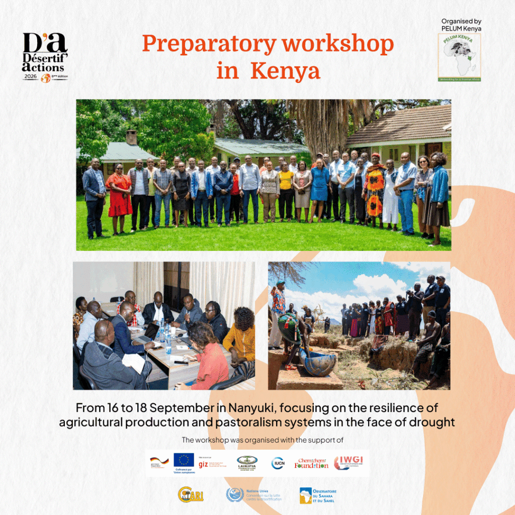 As part of the preparation for the Desertif’actions 2026 International Summit, to be held from 25 to 28 March 2026 in Djerba (Tunisia), the Participatory Ecological Land Use Management (PELUM) Kenya association organized a national preparatory workshop on resilience of agricultural and pastoral production systems to drought, from 16 to 18 September 2025 at the Sportsman’s Arms Hotel (Nanyuki County).