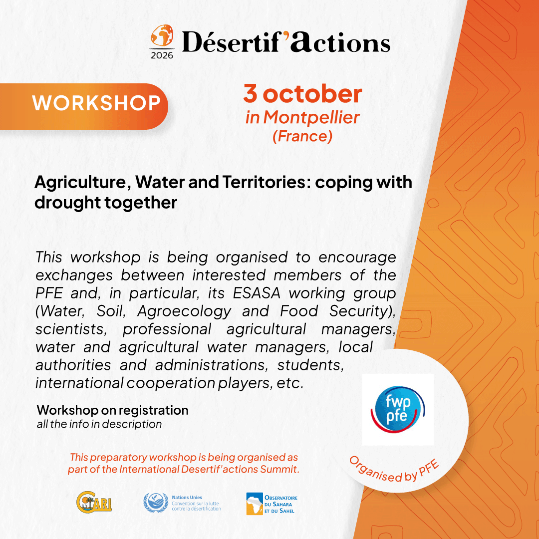 The French Water Partnership, with the support of CARI, Agropolis International, EAT and AIRMF, is organising the national workshop “Agriculture, Water and Territories: coping with drought together” on Friday 3 October 2025 at Agropolis International in Montpellier.